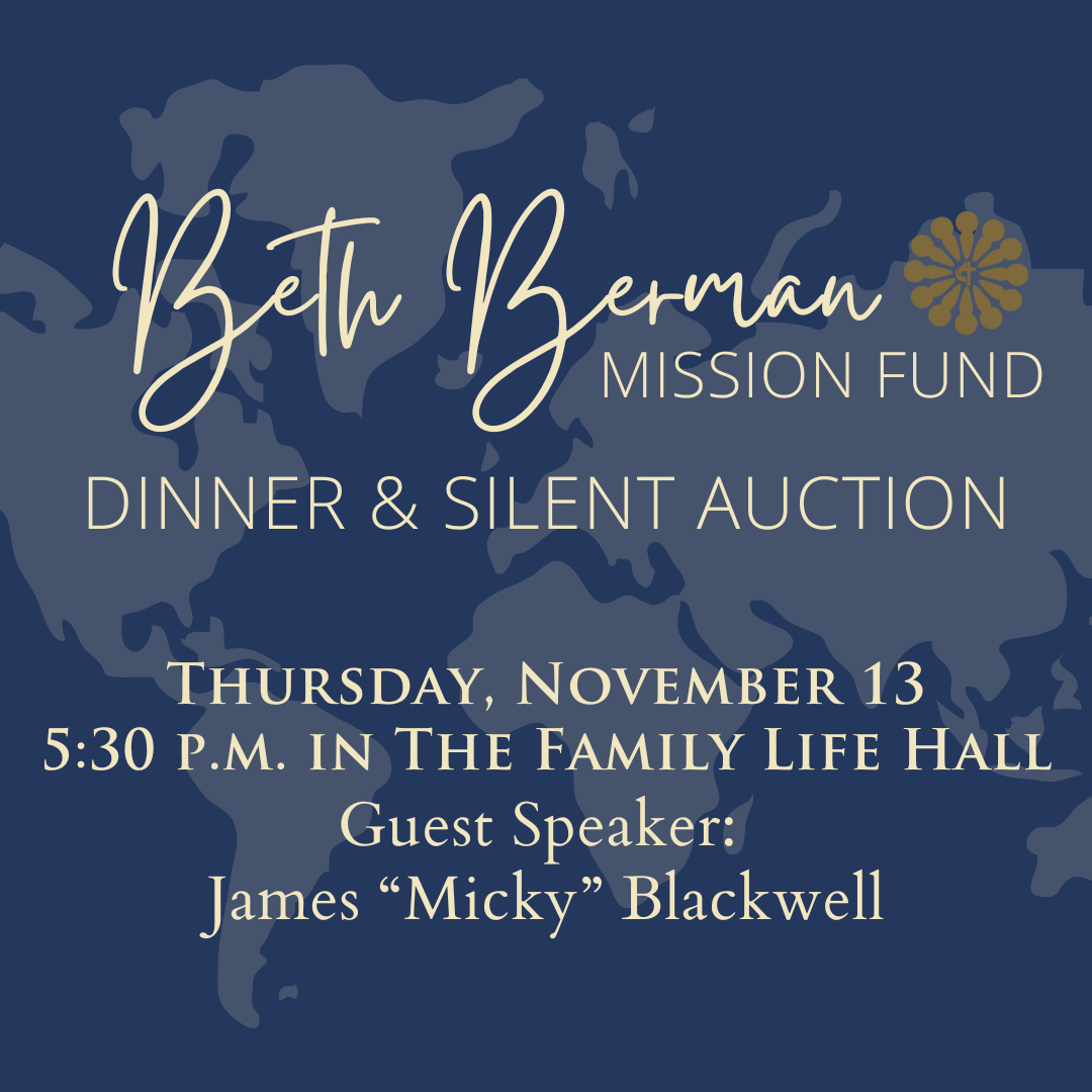 Join us for an evening of fellowship and generosity in support of the Beth Berman Mission Fund.