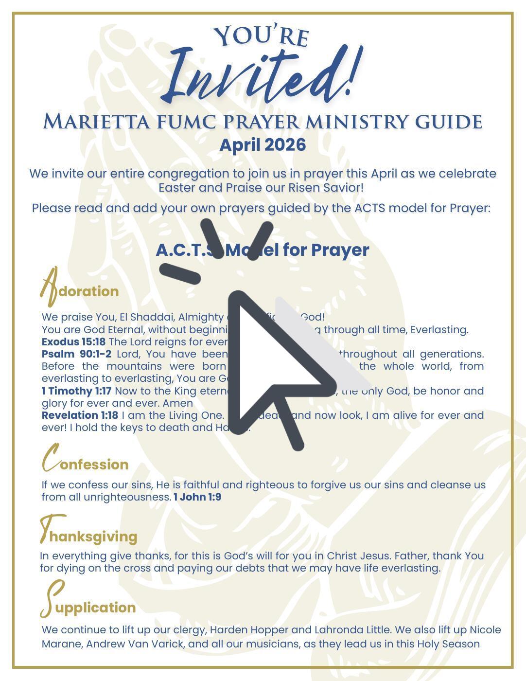 We invite our entire congregation to join us in prayer this April as we celebrate Easter and Praise our Risen Savior! April Prayer Guide April Prayer Guide